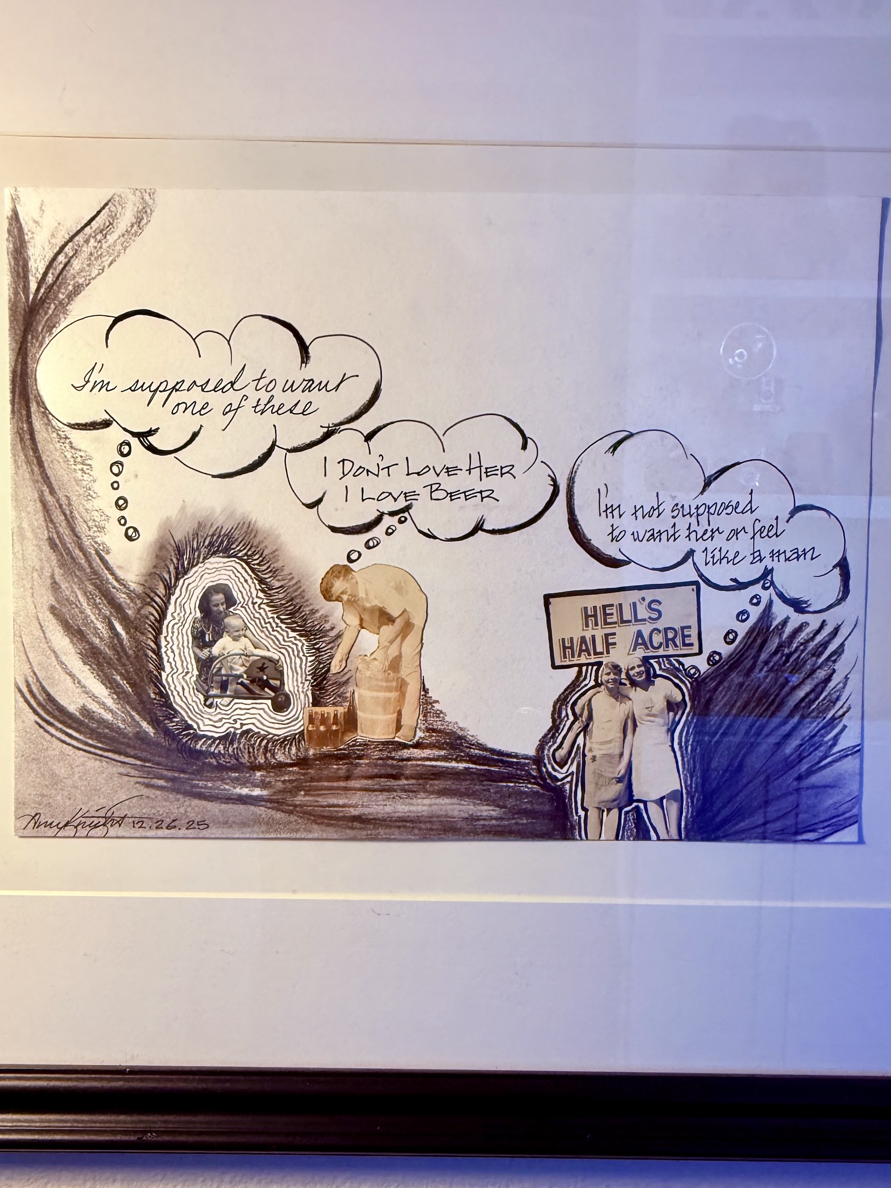 22×18 framed pen & ink, charcoal, B&W & Sepia-tone photography